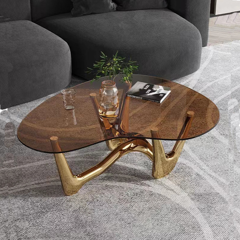 Mesa de café de vidro temperado de aço inoxidável com durabilidade e estética moderna