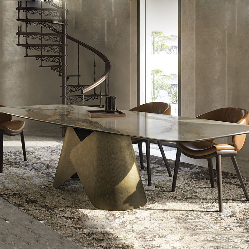 Modernas mesas de jantar de cerâmica de mármore, luxuosas, de luxo.