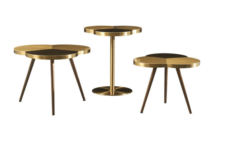Forma e forma: A mesa de apoio adota uma forma cativante de trevo como seu conceito de design central.As três folhas sobrepostas do trevo criam uma silhueta caprichosa e visualmente intriganteAs proporções cuidadosamente equilibradas e as curvas graciosas da forma do trevo contribuem para o charme e elegância da mesa.