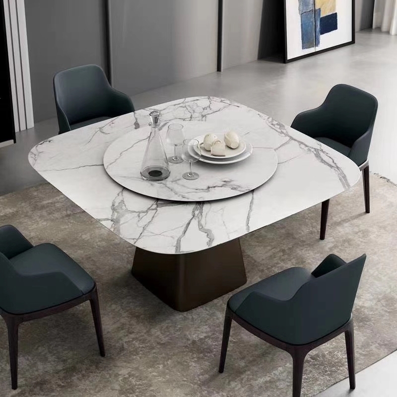 Mesa de jantar moderna com tampo em cerâmica e mármore com cadeira, fabricantes de mesas de jantar de mármore de Foshan |